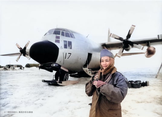 南極点へ向かう米海軍の軍用機の前に立つ。1971年1月。