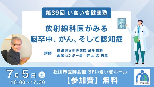 一般社団法人松山市医師会(所在地:愛媛県松山市藤原2丁目4-70 第17代松山市医師会会長:矢野 誠)は、第39回 いきいき健康塾を2025年7月5日(土)に開催します。「いきいき健康塾」は市民向けに無料で開催している公開講座となっており、都度テーマを変更して開催しています。最新の医学的知見を専門医が分かりやすく解説し、日常生活で役立つ知識を提供します。