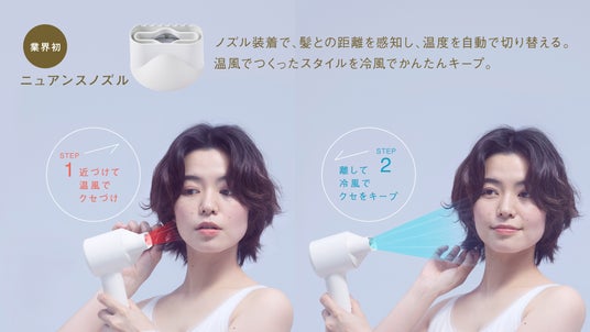 こうした想いから、髪との距離で温風と冷風を自動で切り替える“ニュアンスドライモード”を新搭載。また、使用感や操作性にも徹底的にこだわり、生活空間に馴染むようなデザイン性も備えています。「乾かす」だけでなく「仕上げる」までを1台で完結させる、新しいスタイリング体験をご提案します。
