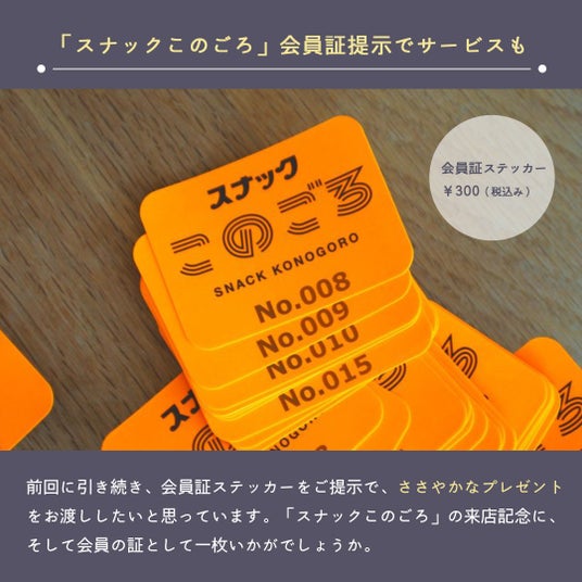 ◆『スナックこのごろ』の会員証ステッカーを販売