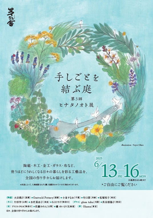好評につき今年も開催決定!日々の暮らしを彩る工藝品 いま注目の「作り手」による生活道具展『手しごとを結ぶ庭 第3回 ヒナタノオト展』
