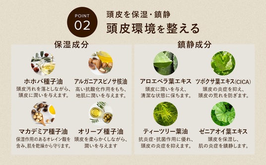 保湿・鎮静成分もたっぷり配合!頭皮環境を整える