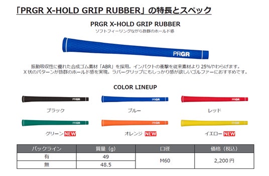 (株)プロギアは、精度の高い国内生産にこだわったゴルフグリップ「perfect pro(パーフェクト・プロ)」とのコラボレーションモデル「PRGR X-HOLD GRIP(プロギア・エックスホールド・グリップ)RUBBER/CORD」と「PRGR X-SOFT LADIES'(プロギア・エックスソフト・レディス)」にそれぞれ新色を6月13日から追加発売します。「PRGR X-HOLD GRIP」にはグリーン、オレンジ、イエローの3色を追加、従来のブラック、ブルー、レッドを合わせた6色展開となります。また、レディス仕様の「PRGR X-SOFT LADIES'」には2025年4月に発売したクラブ「CRYSTAL egg(クリスタル・エッグ)」のイメージカラーであるクリスタルグリーンを加え、従来のグレー、ラベンダー、スカイブルー、ミルキーピンクと合わせた5色展開となります。PRGR直営店、PRGRオンラインショップ、PRGRお取扱店で購入可能なほか、PRGR SPECIAL ORDER SERVICEのカスタムパーツとしてもラインアップします。プロギアでは今回の新色追加で、自分仕様のクラブを作る楽しみ、使う喜びをより多くの方に体感いただきたいと考えています。