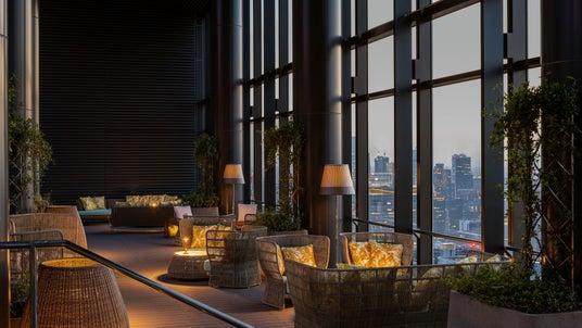 45階のルーフトップに位置する「ブルガリ バー」では、東京のスカイラインに囲まれた地中海庭園をお楽しみいただけます。ルーフトップテラスを有し、夏季には全面ガラス張りのドアを全開にし、屋内と屋外の境界を無くしたシームレスな空間を作り出します。ブルガリ バーでは屋内に47席、屋外に62席をご用意しています。