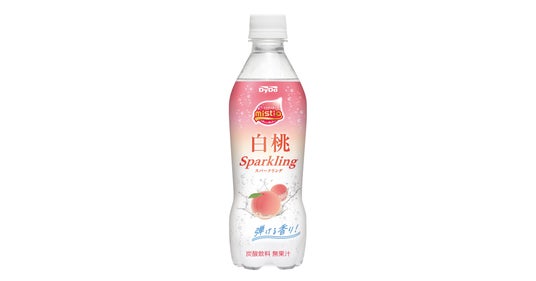 熱中症対策においしく塩分補給!爽快クリア炭酸が新登場!「ミスティオ 白桃スパークリング」