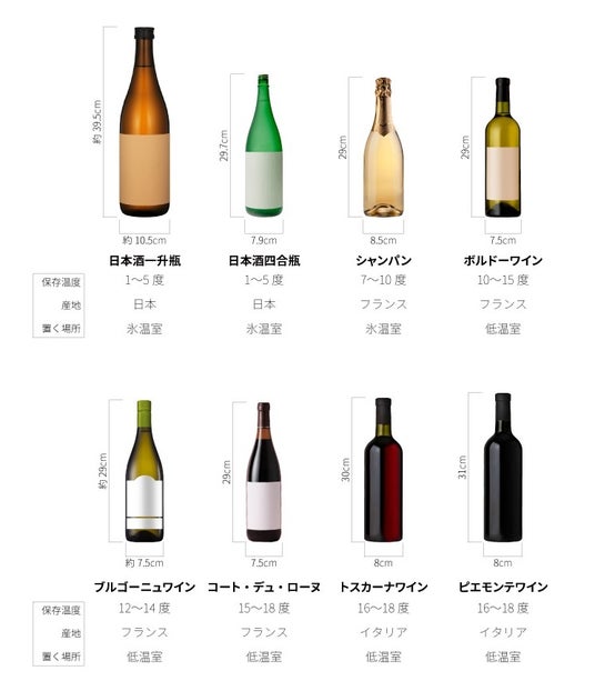 ただし、飲み頃温度は少し異なり、赤ワインは13~18℃、果実味やスッキリとした酸味を味わいたい白ワインは10℃前後、きめ細かな泡も楽しめるシャンパンは8℃前後で調整するのがベスト。