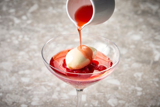 スペシャリテは、夏の夕日のように眩しく輝くカクテル仕立てのスイーツ「ザ・ルージュ」。酸味と甘さが絶妙なフレッシュラズベリー、100%苺で作るストロベリーコンソメ、くちどけなめらかなアイスクリームが織りなす爽やかな味のマリアージュが、体のほてりをすっと癒し、一口で虜になる味わいです。
