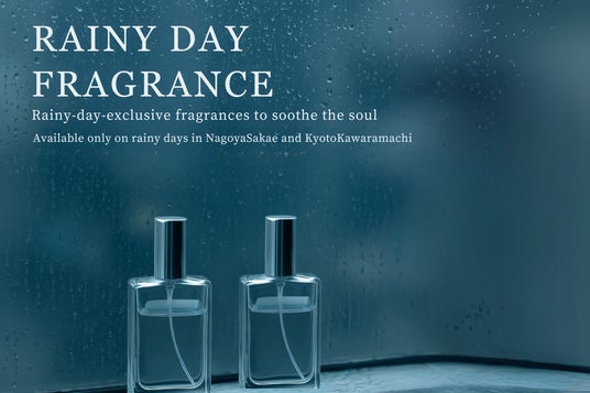 本企画では、それぞれの街の風景と梅雨の風趣をとらえて調合した各店舗限定のフレグランスをご用意いたしました。空気がしっとりと潤うこの季節、雨音や街の匂いとともに、“雨の日だからこそ出会える香り”との偶然の出会いをお楽しみください。