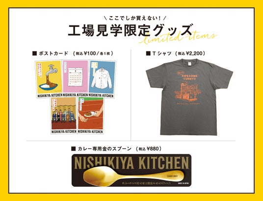 ニシキヤキッチンの商品の一部を販売しているほか、工場見学でしか買えない限定のオリジナルグッズもご用意しています。