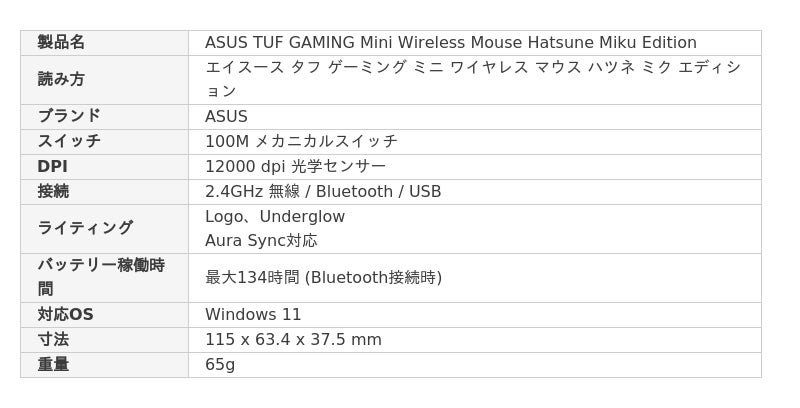 ASUS TUF GAMING Mini Wireless Mouse Hatsune Miku Edition