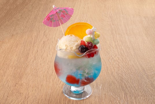 金魚鉢くりーむそーだ(810円): 金魚が泳ぐ金魚鉢グラスで涼しげな、夏にぴったりのドリンクです。