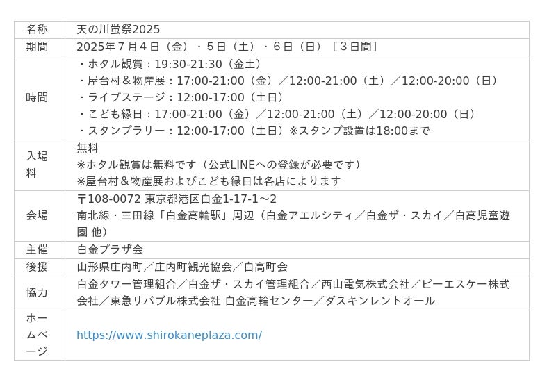 - 白金プラザ会 天の川蛍祭2025実行委員会(白金プラザ会)