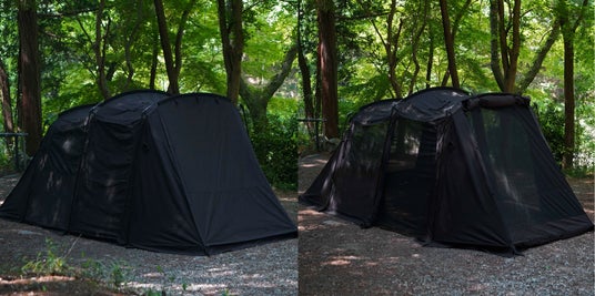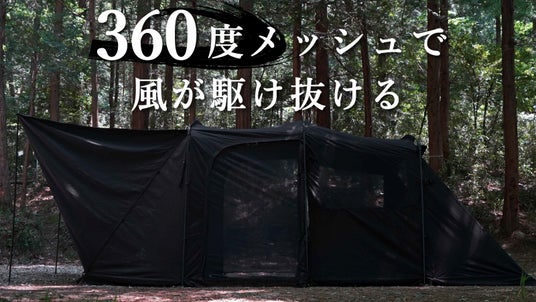 6面がメッシュ窓にできるTC素材のブラック2ルームテントがMakuakeにてクラウドファンディングを開始!