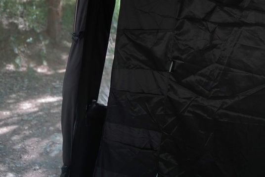 サイドウォールにはファスナーが付いているので、巻き上げたり、引っ張ったりとアレンジの幅も広がります。