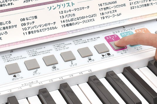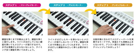 メロディー演奏をアシストする3パターンのステップレッスン機能を搭載。