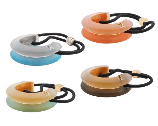 THBTのフロスティング ルーサイト ドームポニーカフは、すりガラスのようなフロスト加工に背面からうっすら透けるグリッターをあしらっています。髪に着けると妖艶な輝きを醸し出し、左右、正面、上下どの角度からも光沢が美しく、上質なカシミヤのよう。髪を包み込むような柔らかなフォルムにレーザー埋め込んだTHBTエンブレムがラグジュアリー感をアップする逸品。